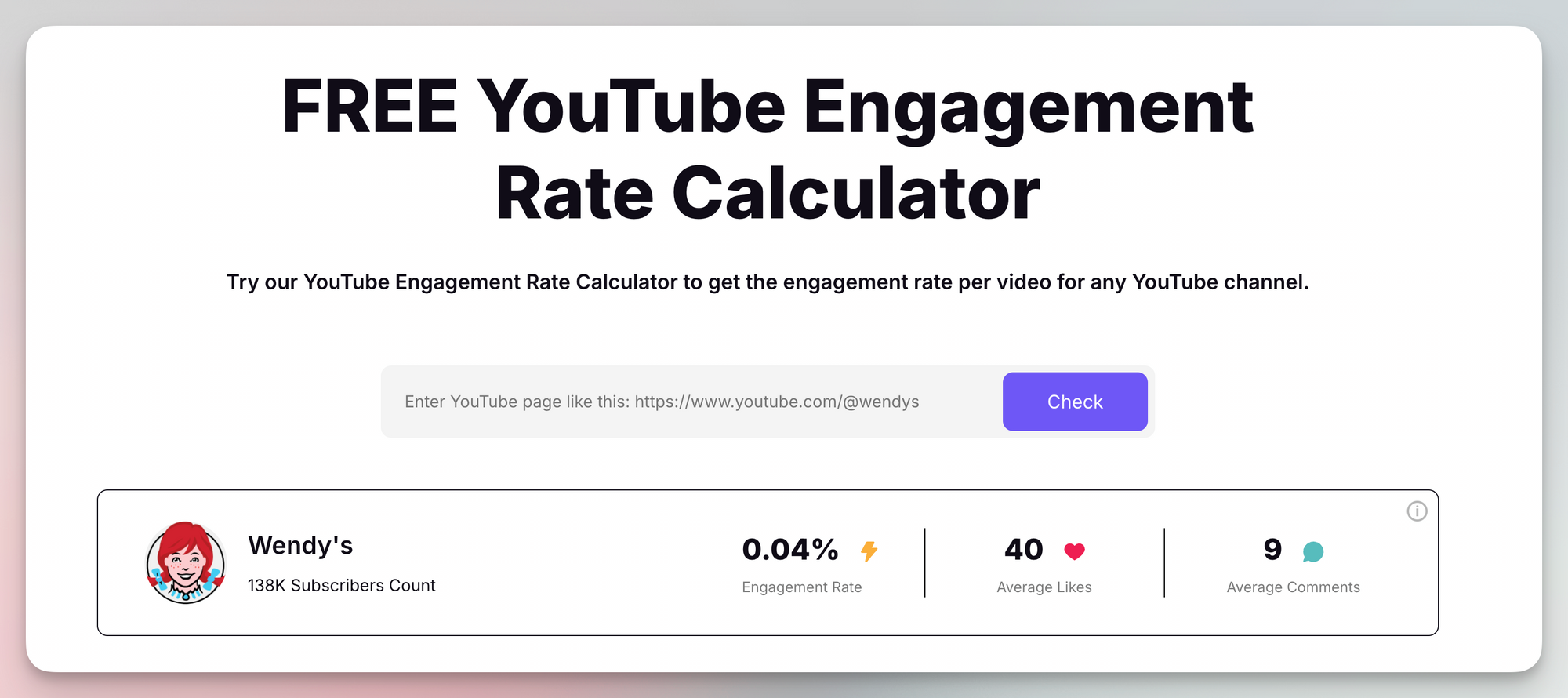 Want instant insights for any YouTube channel? Our new calculator delivers quick engagement rates right in your browser. Perfect for analyzing competitors or potential collaborators. π